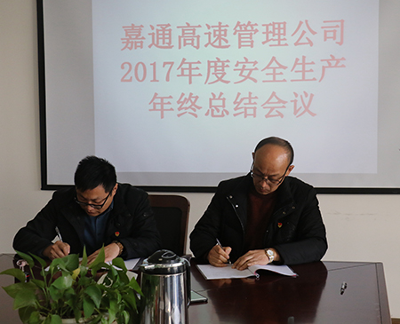 1月16日,高速管理公司召開2017年度安全生產年終總結會議,全面總結回顧公司2017年度安全生產工作,部署2018年度安全生產任務重點。公司領導班子、各部處與所屬公司負責人及相關人員參加會議。會上,各管理處、所屬分公司分別匯報了2017年度安全生產工作開展情況,簽訂了2018年度安全管理責任書,學習了嘉興市安全生產工作會議上胡海峰市長的講話精神。